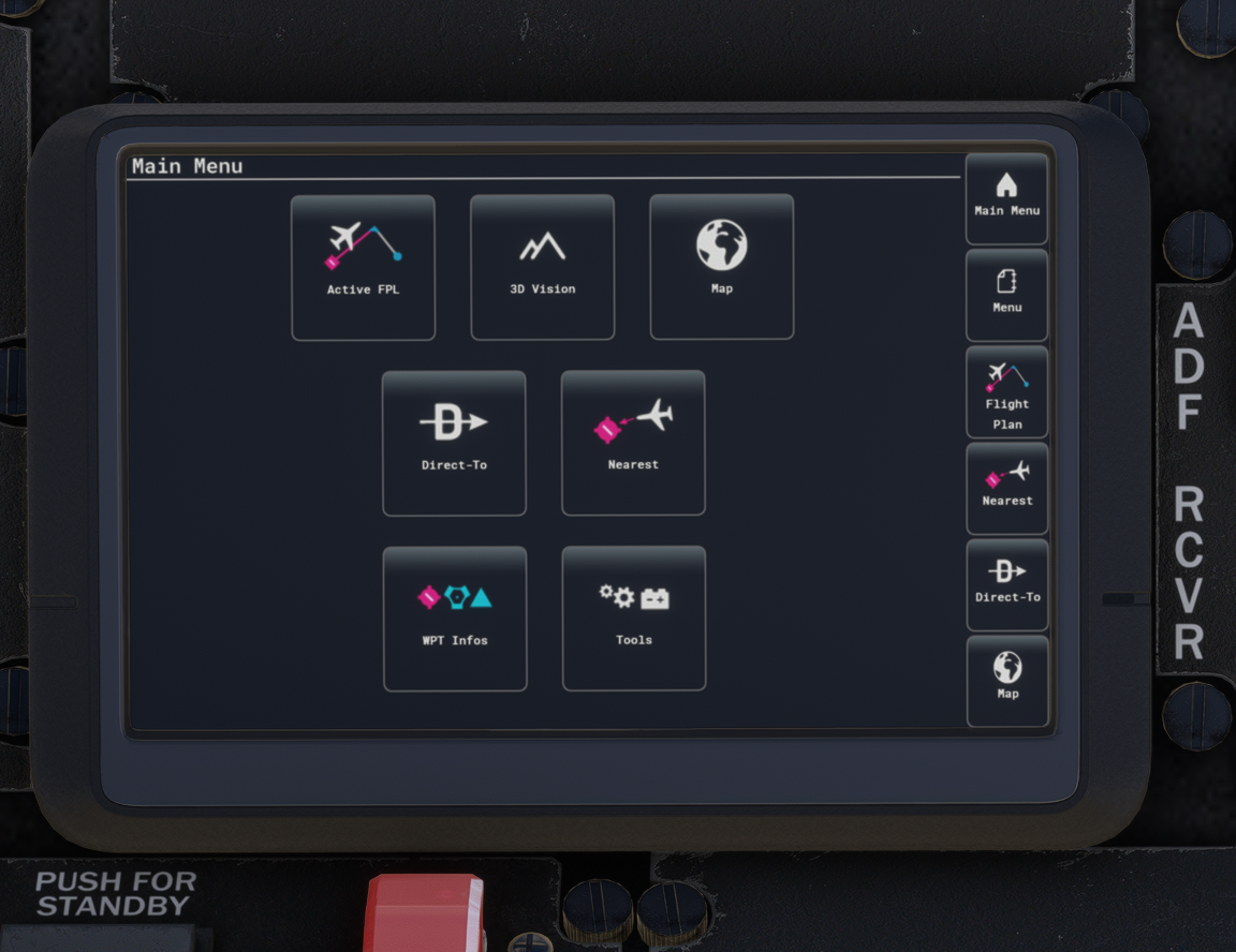 By default, the CH47D includes the Stock Aera GPS. This is a rather basic GPS system, that will allow you to create simple flight plans, "Direct-to" flights and access the map and navaids. Real operators of the CH47D use these types of systems in real life.