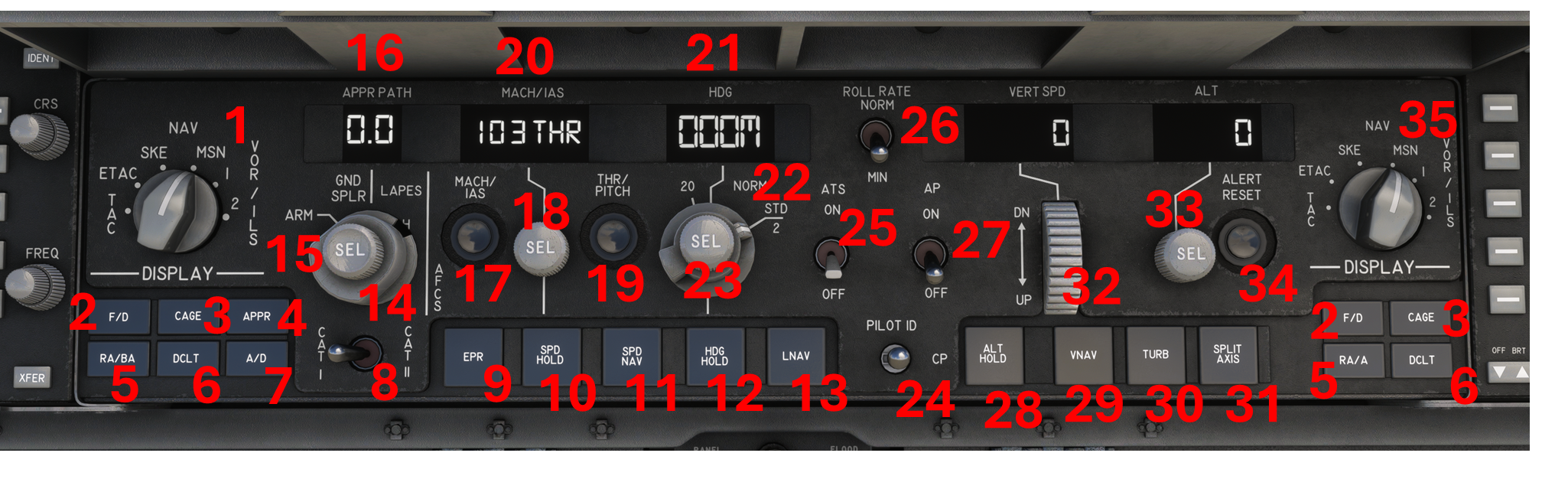 25. **ATS:** Autothrottle Master Switch. Required for IAS/MACH to function.