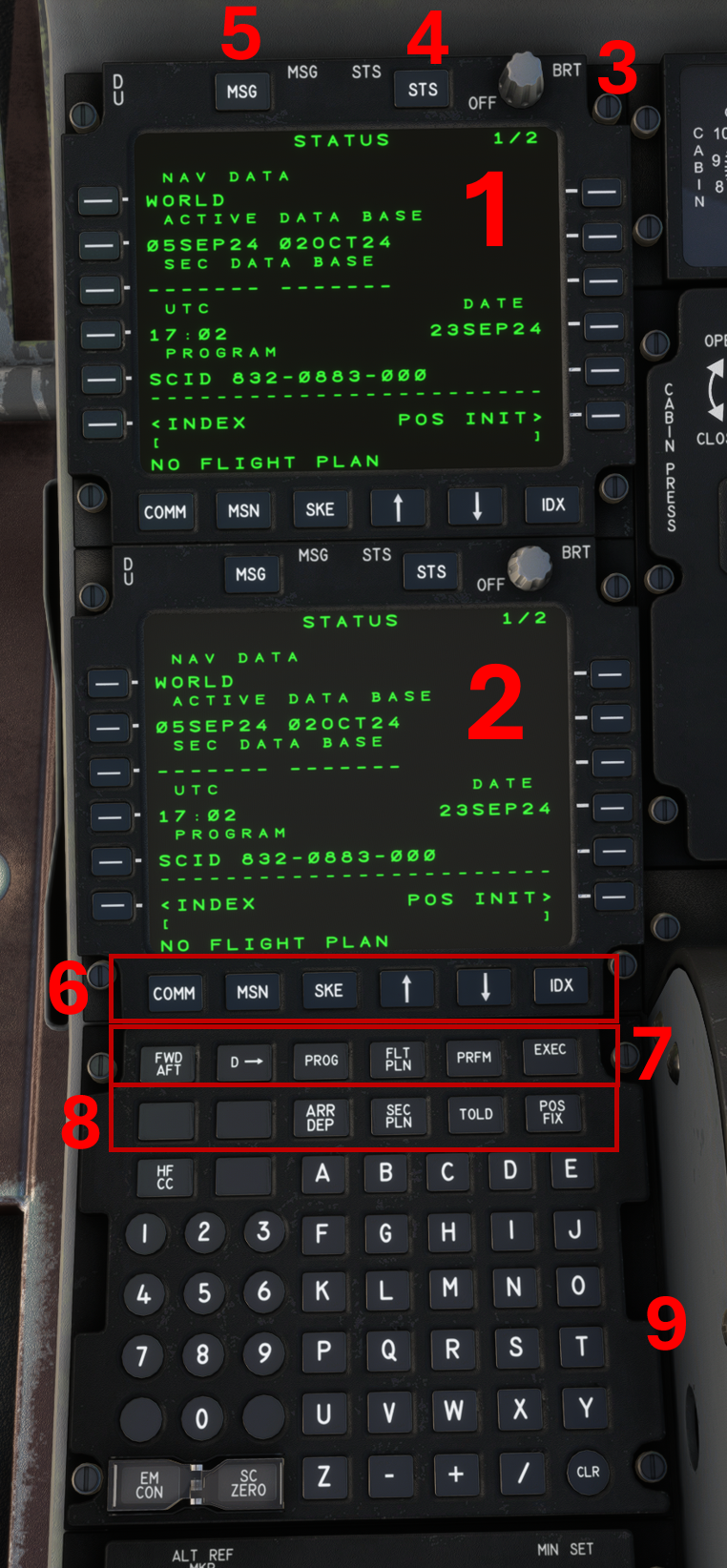 This system enables aircrew or operators to input and manage critical mission parameters, providing an interface for real-time updates and control over navigation and operational tasks. The system mainly functions as Flight Plan Input and Modification device, from where the crew can input the flight route, waypoints, target locations, and other critical navigation data, as well as modify them in real-time based on mission needs. Other functions on the real counterpart include stationkeeping and aircraft performance calculations.