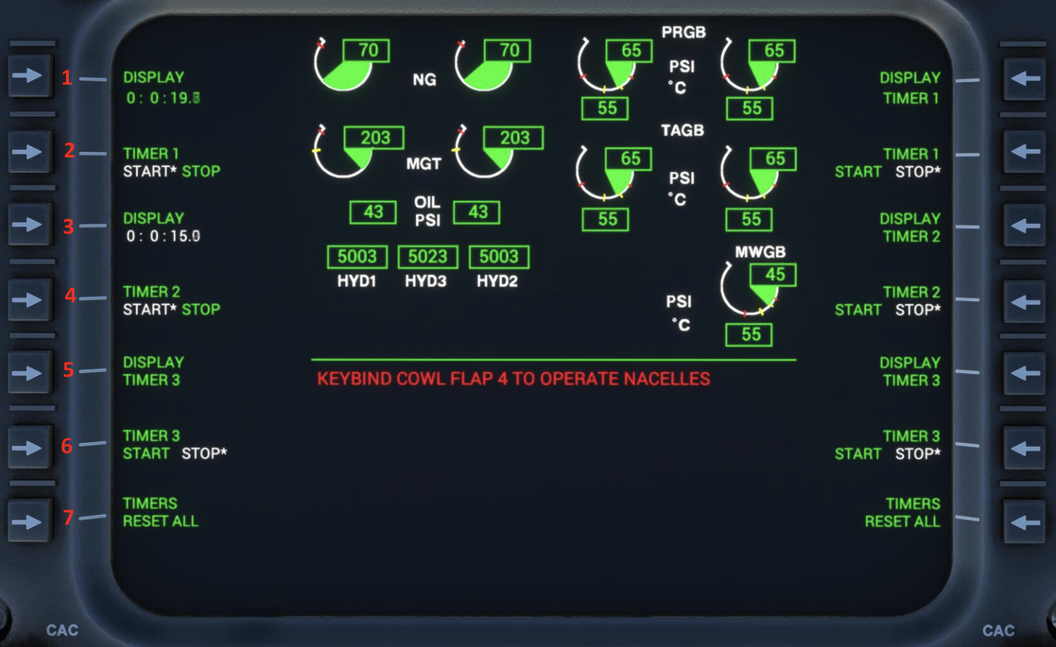 <figure><img src="https://2097992004-files.gitbook.io/~/files/v0/b/gitbook-x-prod.appspot.com/o/spaces%2FPEYB5ha9hkXpOBVaiED0%2Fuploads%2Fp9uXxKoB5yQlEnk7gVSj%2Fimage.png?alt=media&#x26;token=06e1646c-5a45-4aca-9cfe-428fd04750d9" alt=""><figcaption><p>Figure: Timer Menu (CDU)</p></figcaption></figure>