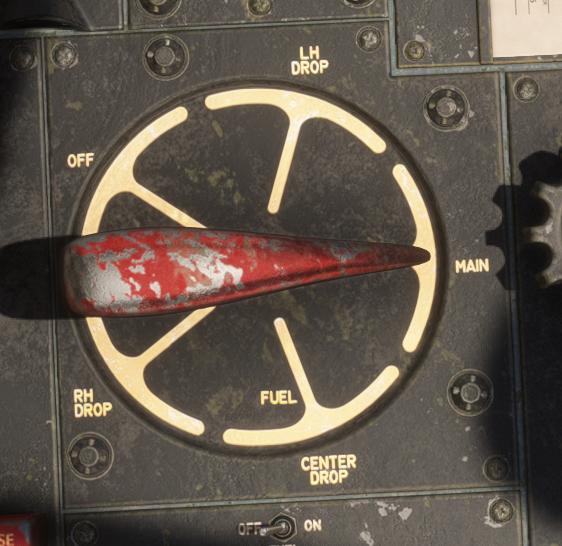 Active Fuel Tank can be selected using the handle located on the left side of the cockpit. Please note that it takes a few seconds for fuel to start flowing from the new tank when it has been switched.